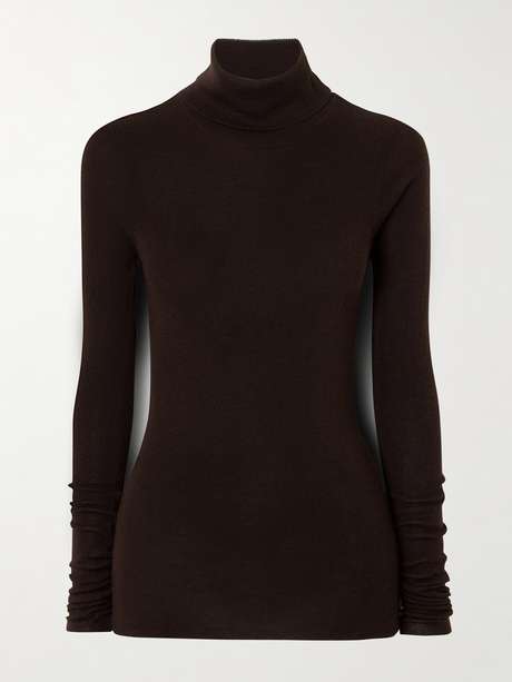 The Frankie Shop’s turtleneck sweater is designed with the label’s signature blend of comfort and versatility. Knitted from a lightweight wool and silk-blend, it has a slim silhouette and elongated sleeves that drape effortlessly at the cuffs. Style it solo or layered beneath the brand’s sharp tailoring.