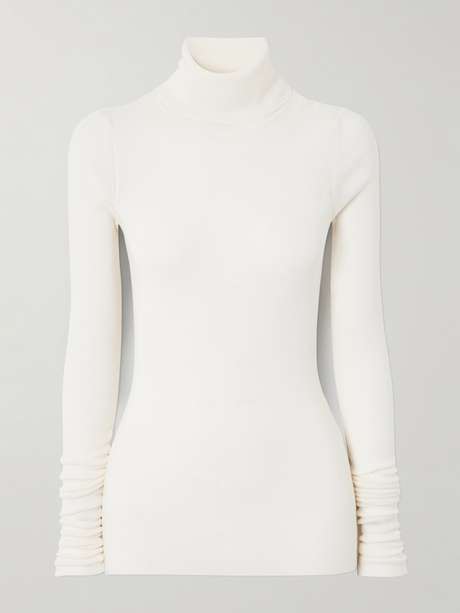 The Frankie Shop’s turtleneck sweater is designed with the label’s signature blend of comfort and versatility. Knitted from a lightweight wool and silk-blend, it has a slim silhouette and elongated sleeves that drape effortlessly at the cuffs. Style it solo or layered beneath the brand’s sharp tailoring.