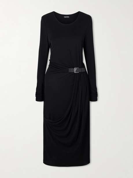 A study in modern elegance, this TOM FORD midi dress captures the label's unmistakable sophistication. Cut from smooth jersey with a waist-defining belt, it effortlessly drapes across the figure. Style it with strappy heels and minimalist jewelry.