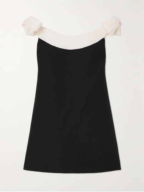 Valentino Garavani's dress is part of the label's Fall '23 'Black Tie' collection that takes the code at "face value" - nearly everything in the monochrome range fits effortlessly into your day-to-day life, rather than just the big events. This mini dress is cut from wool and silk-blend in a '60s inspired silhouette and has a contrasting off-the-shoulder neckline decorated with two sweet bows.