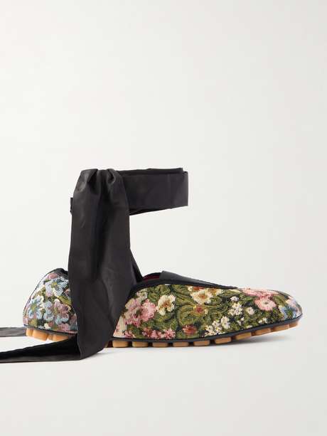 Valentino Garavani brings a sense of romance to everyday dressing, balancing craftsmanship with expressive detail. Resting on rubber soles, these ballet flats are made from floral-jacquard canvas and finished with dramatic taffeta ties that wrap elegantly around the ankles.