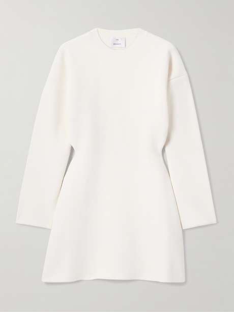 Designed in collaboration with Rosie Huntington-Whiteley, Wardrobe.NYC's minimal dress has a distinct shape that nips in at the waist, creating an hourglass effect. It's made from gently structured ponte and has dropped shoulder seams.