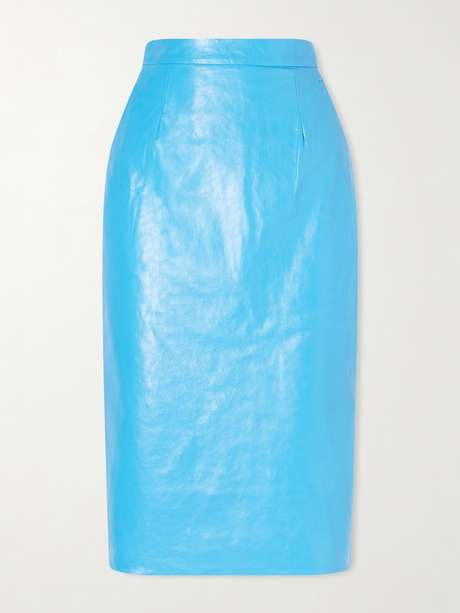Willy Chavarria's Spring '26 show was named 'Huron' – the designer’s hometown – and paid tribute to U.S. Latino immigrants and their influence on American fashion. Borrowing elements from the Zoot Suits of the '30s and '40s, this pencil skirt is cut from leather in a striking 'Bourdain Blue' shade, matching with the shirt from our edit.