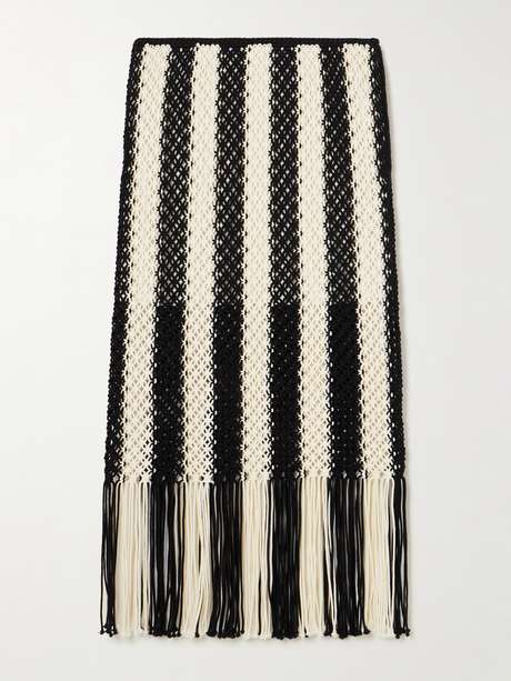 Zimmermann's skirt is made from cotton that's intricately macraméd to create a striped pattern. It falls to a fringed hem that sways gracefully with each step. Style yours with the coordinating top.
