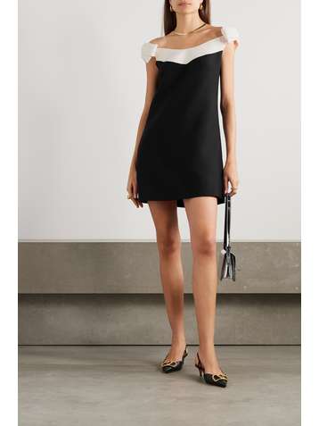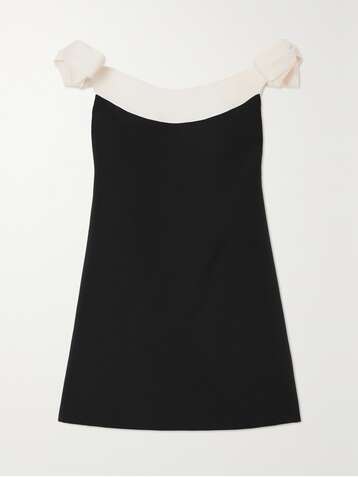 Bow-embellished off-the-shoulder wool and silk-blend mini dress