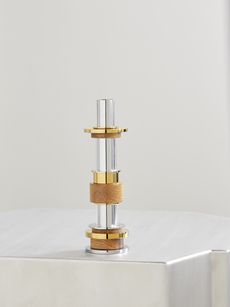 CHRISTOFLEMyriade large stainless steel, gold-tone, oak and glass candle holder