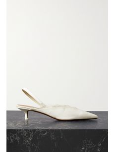 If you’re looking to strike the perfect balance between glamour and ease, a modern midi heel could be the perfect shoe for you. Neous’s lace-trimmed crepe de chine kitten heels hark back to centuries-old styles, but the unconventional silhouette lends them perfectly to a stylish city wedding. Meanwhile, The Row’s laidback block-heeled pumps are crafted from a crocheted cotton that’ll instantly dial down more prim, traditional fabrics – and are so undeniably wearable that they risk being glued to your feet well beyond the wedding.