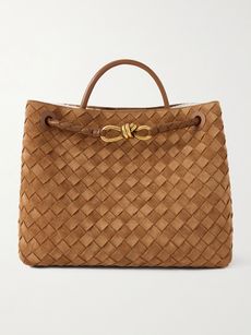 BOTTEGA VENETAAndiamo medium shearling-lined leather-trimmed intrecciato suede tote