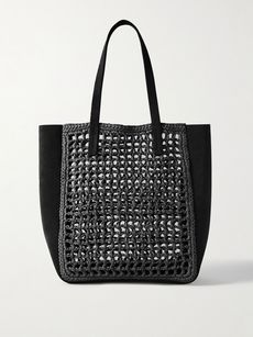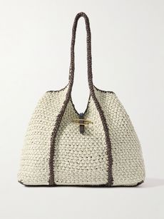TOD'ST Timeless large leather-trimmed crocheted raffia tote