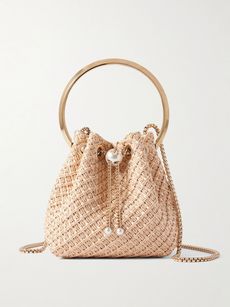 JIMMY CHOOBon Bon embellished raffia bucket bag