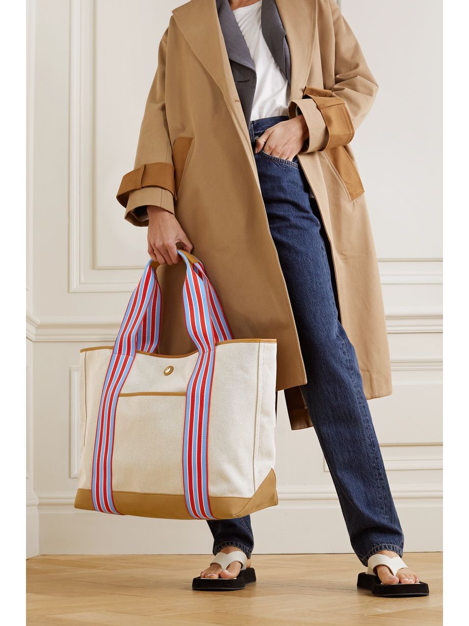 + Paula's Ibiza small leather-trimmed woven raffia tote