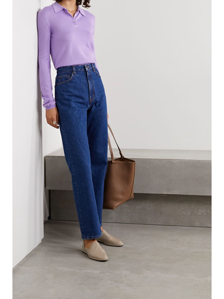 Paneled faille and ribbed wool and cashmere-blend sweater