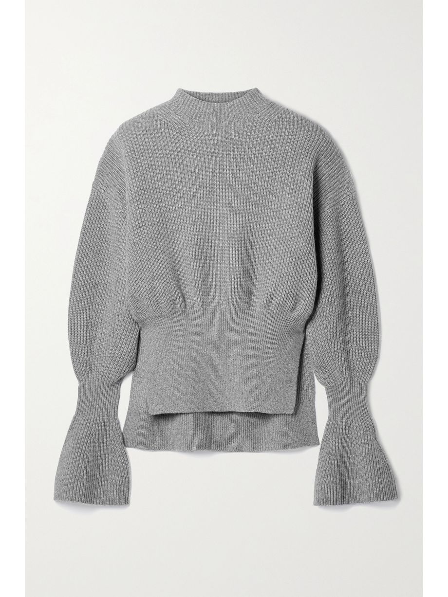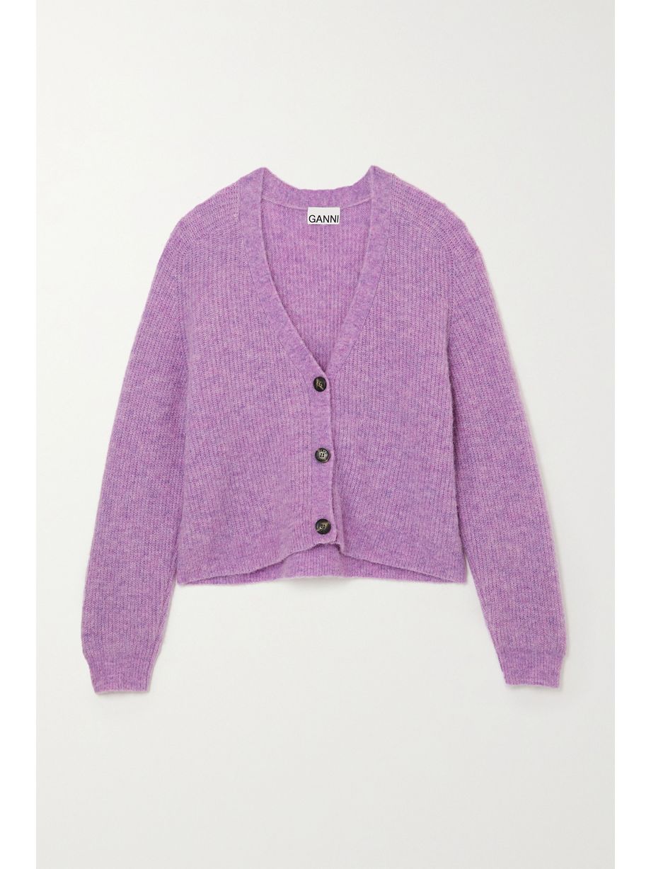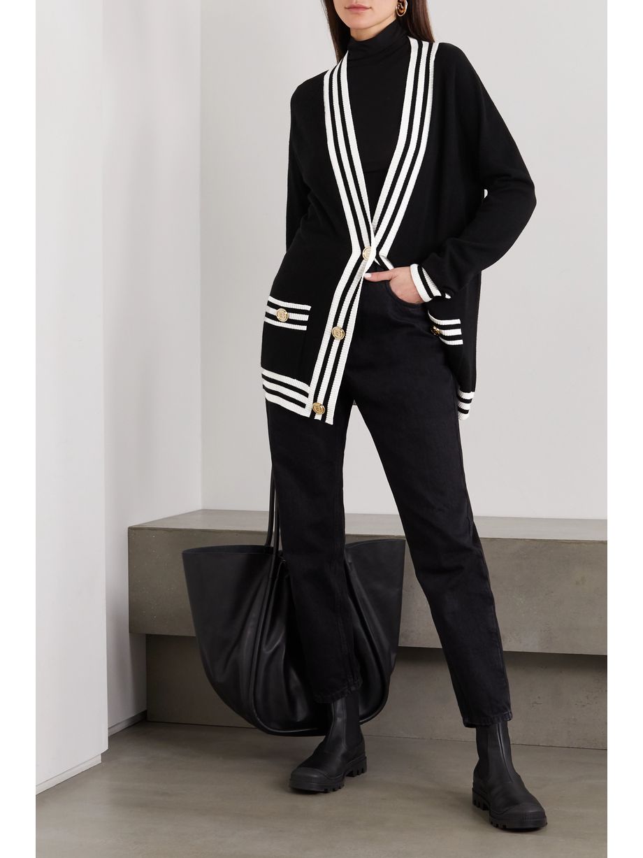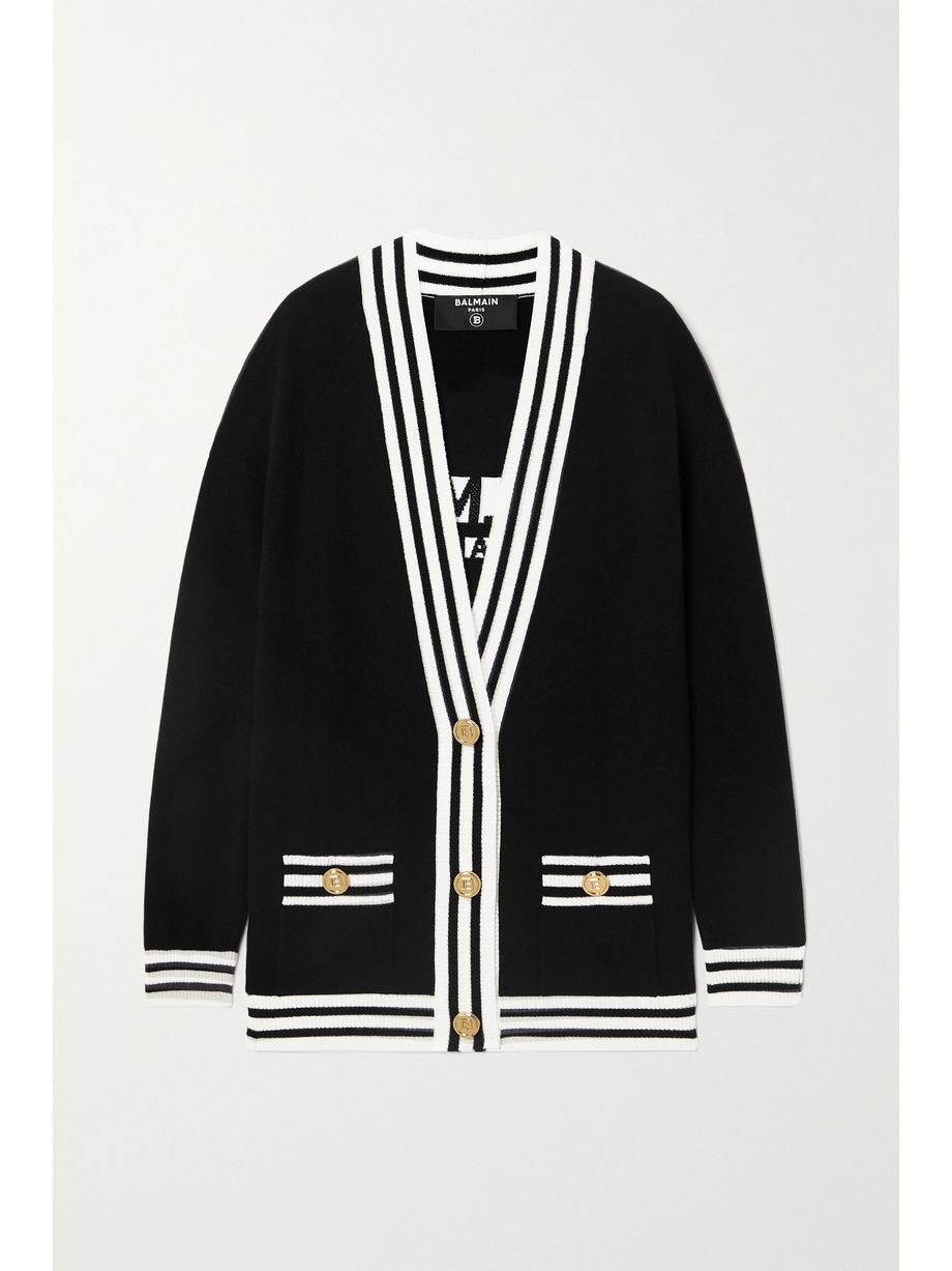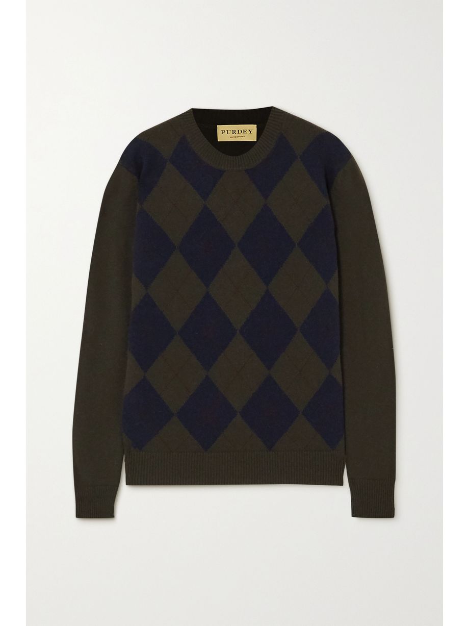 Asymmetric argyle ribbed wool and cashmere-blend cardigan