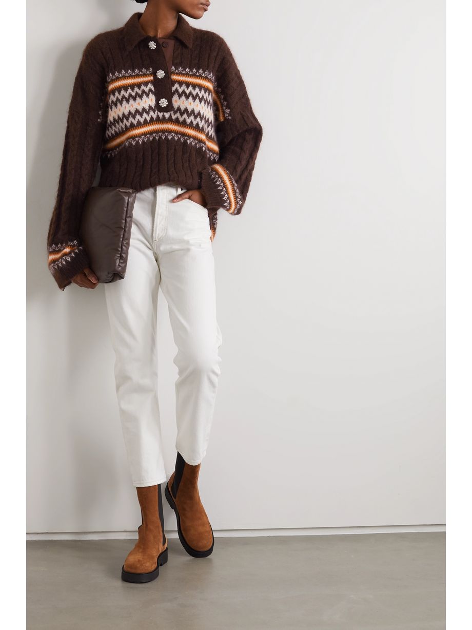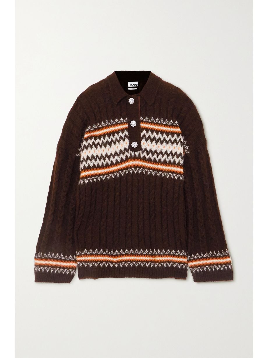 Crystal-embellished Fair Isle cable-knit alpaca-blend sweater