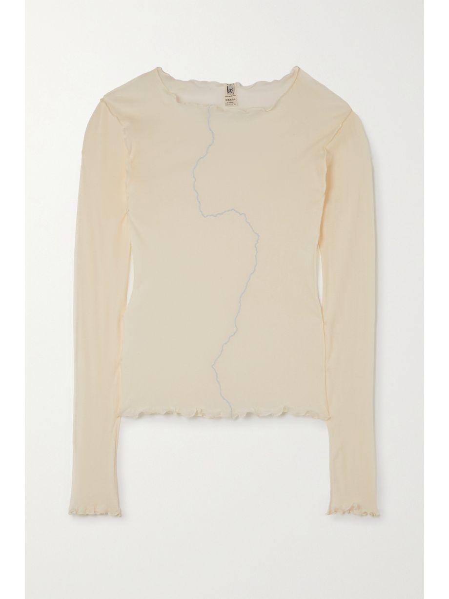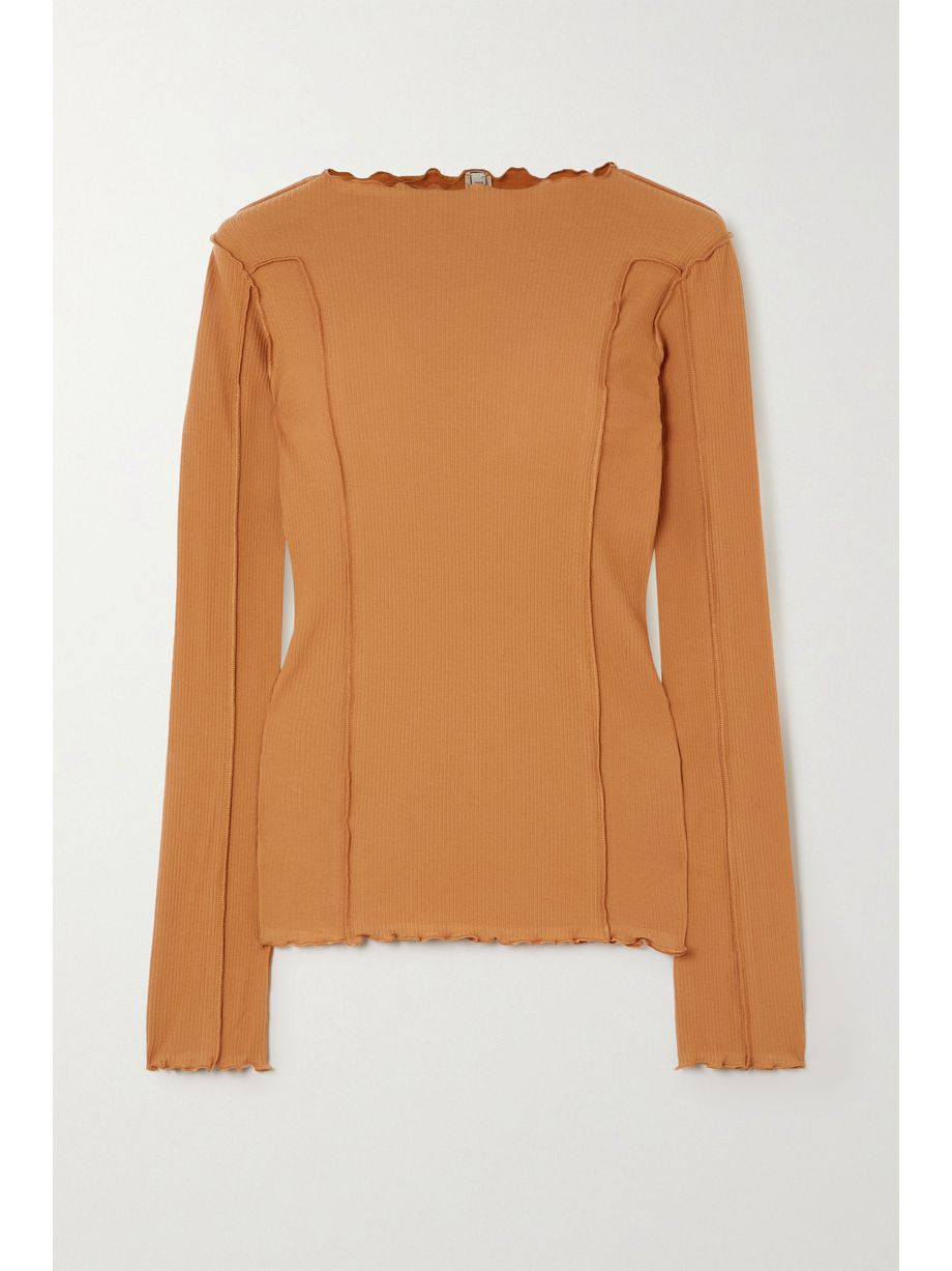 Omato ruffled ribbed stretch organic cotton top