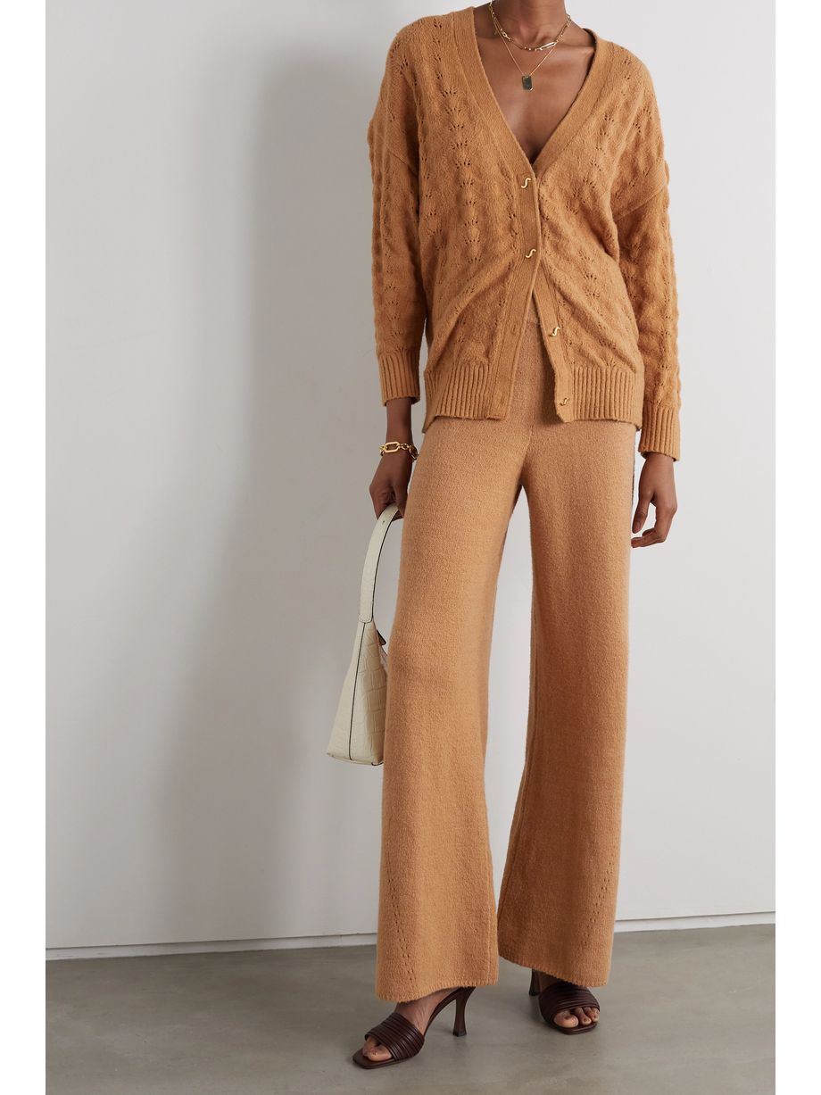 Mitch pointelle-knit cotton-blend wide-leg pants