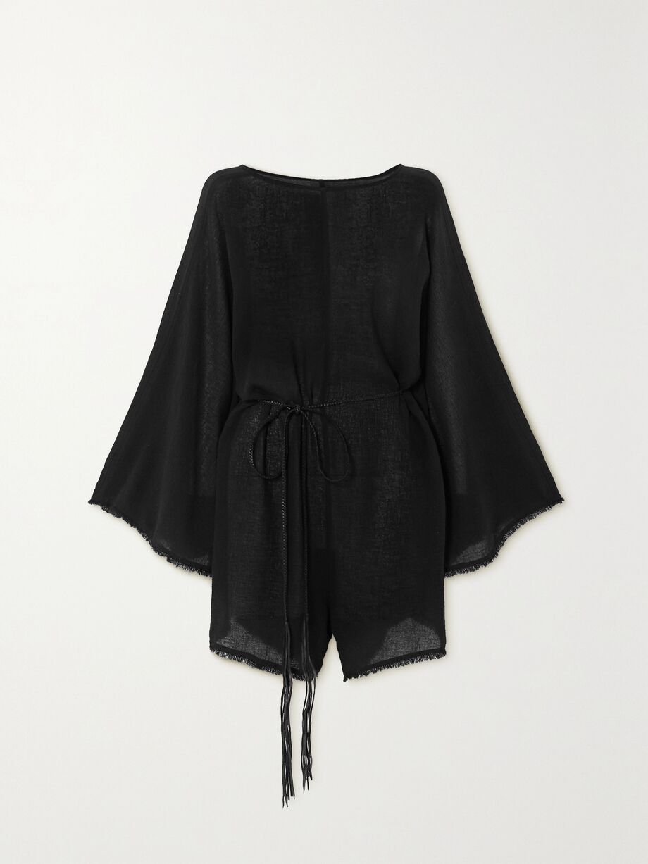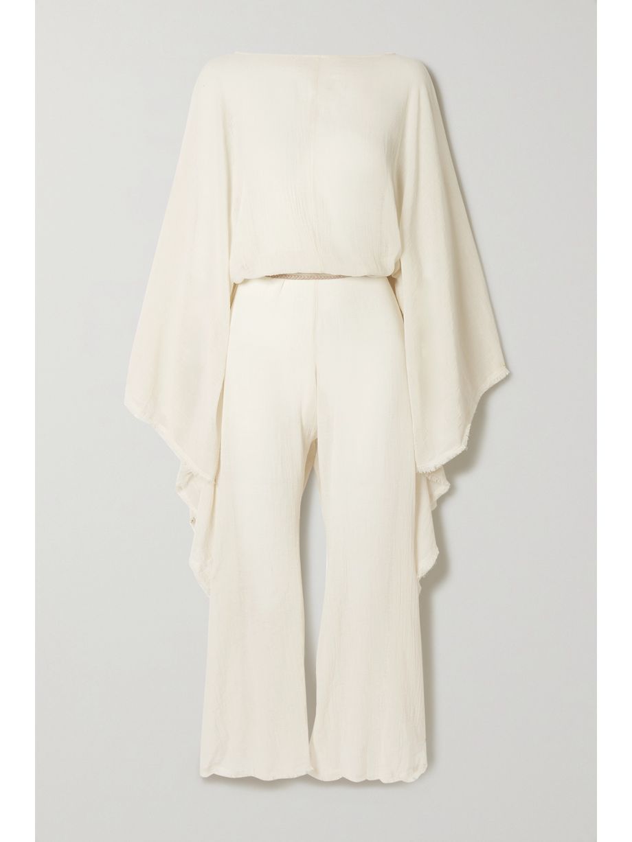 + NET SUSTAIN Nikab suede-trimmed fringed cotton-gauze jumpsuit