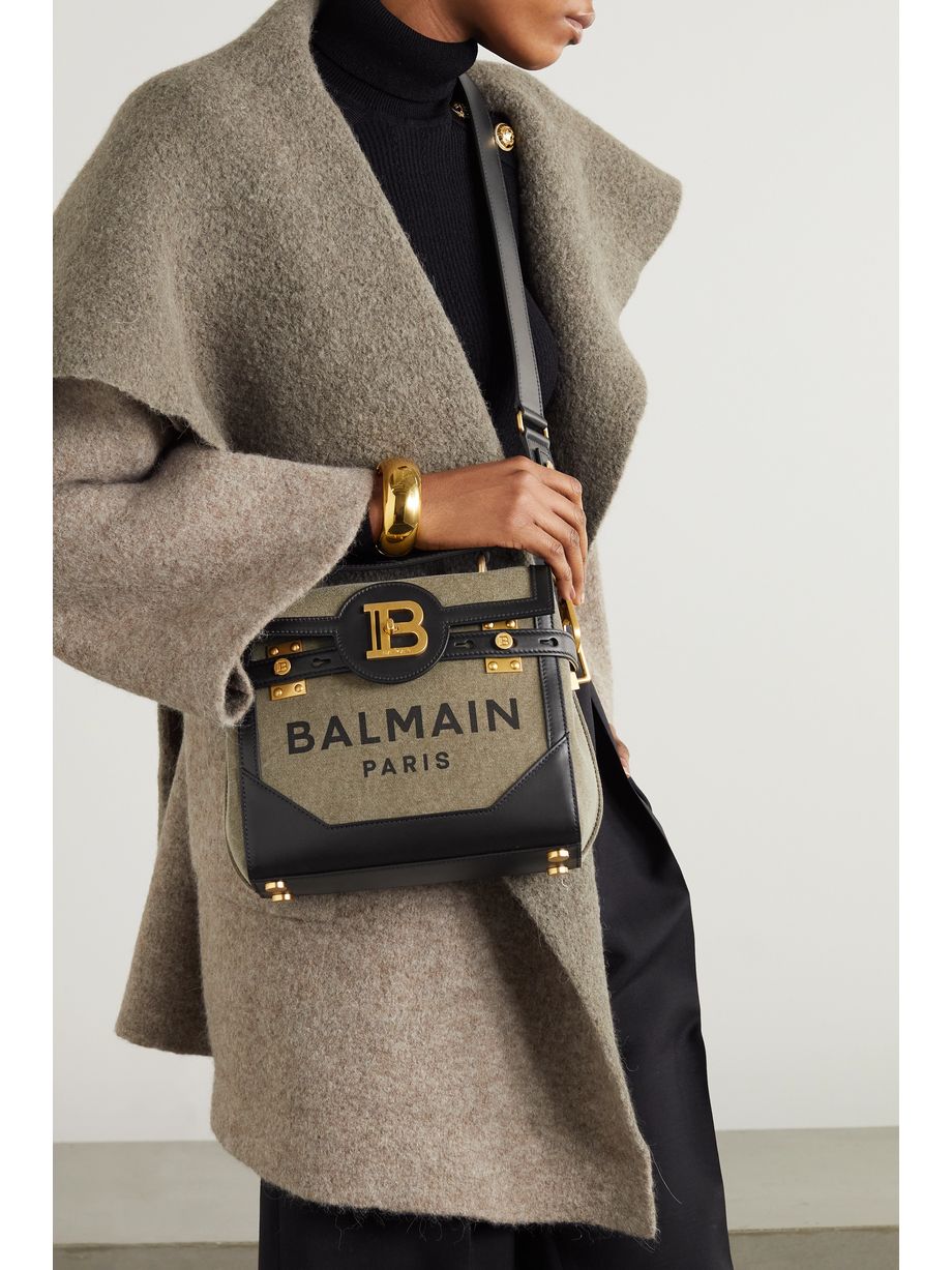 B-Buzz 23 textured leather-trimmed printed canvas shoulder bag