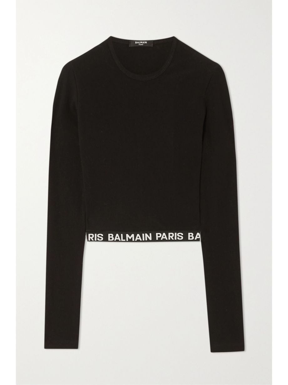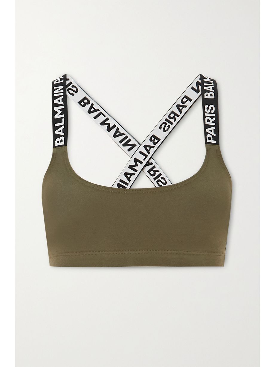 Jacquard-trimmed cotton-blend jersey soft-cup bra