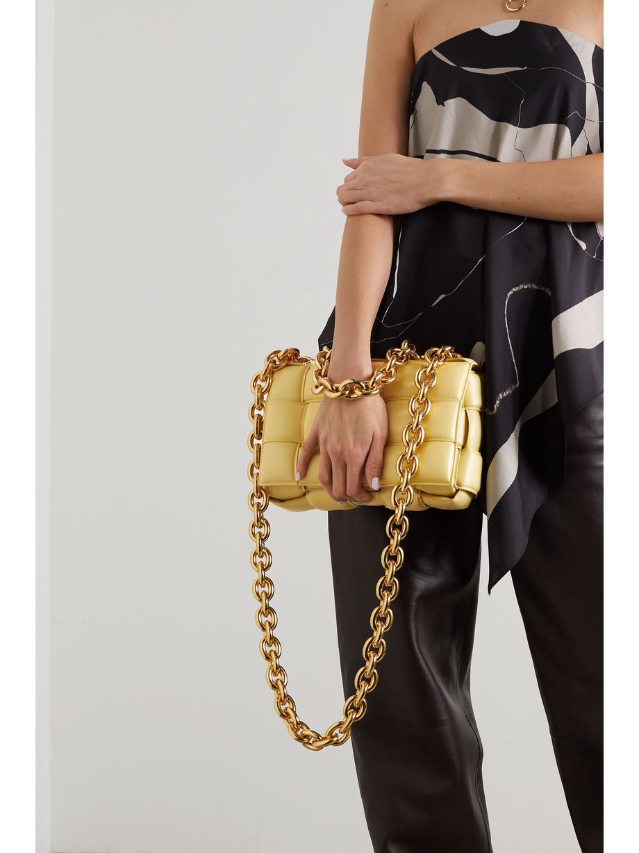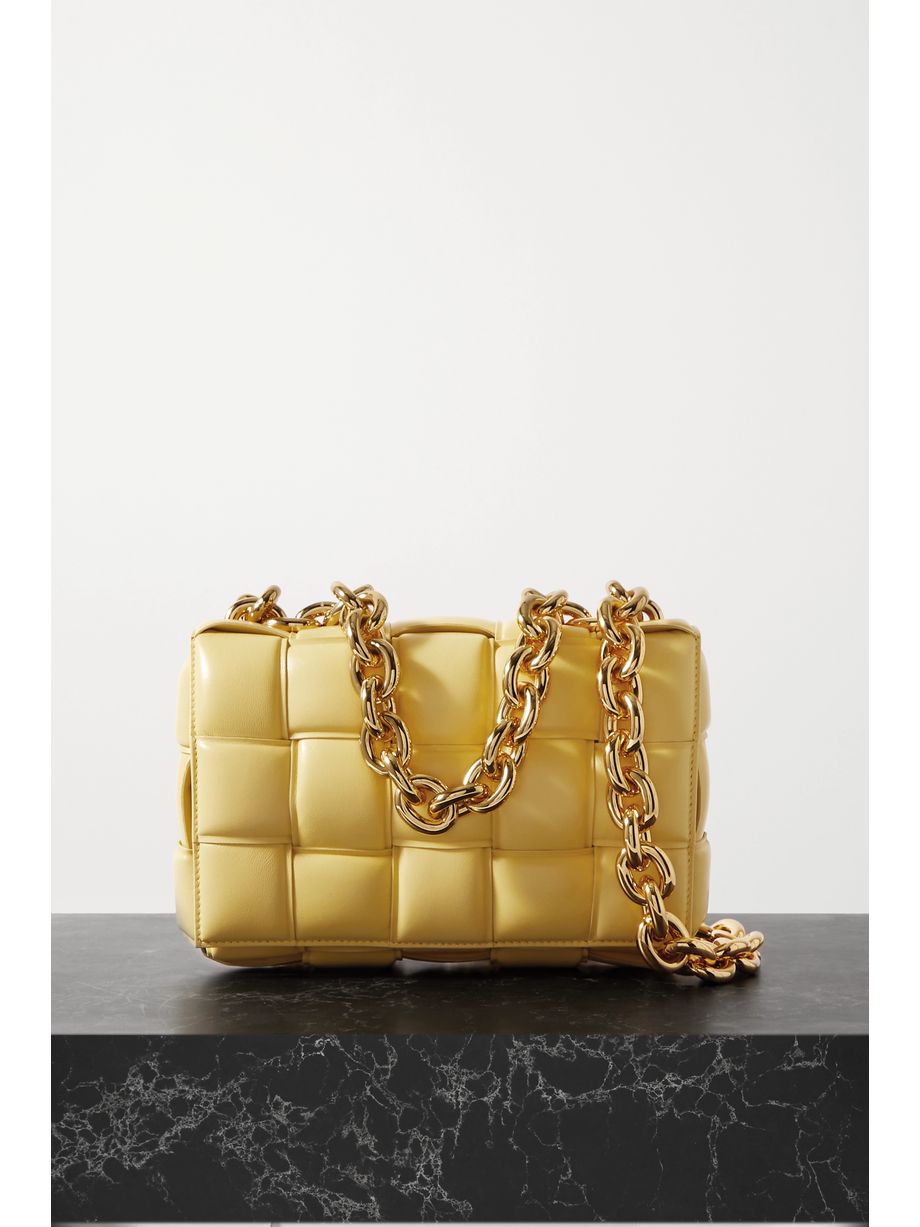 Cassette chain-embellished padded intrecciato leather shoulder bag