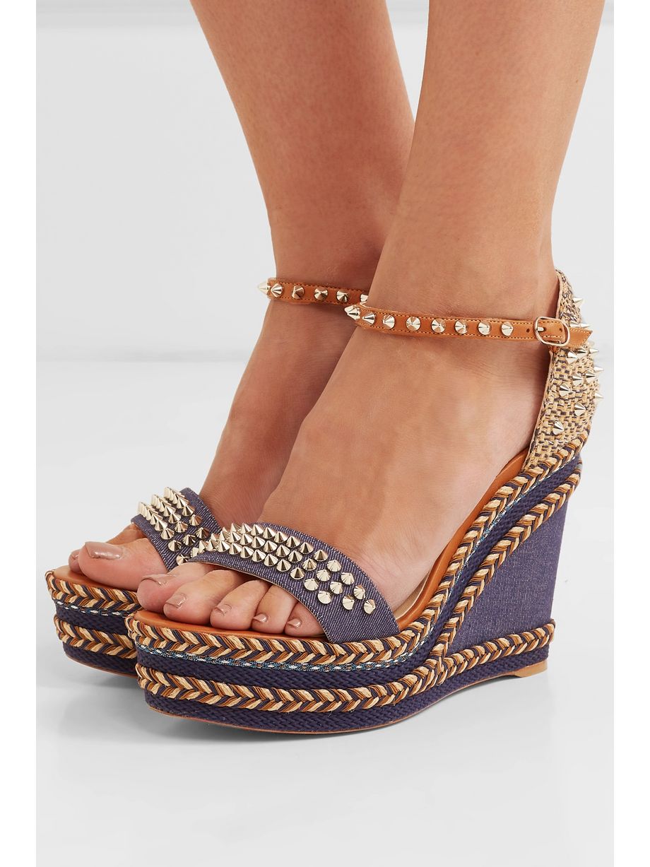 Madmonica 110 spiked denim and leather espadrille wedge sandals