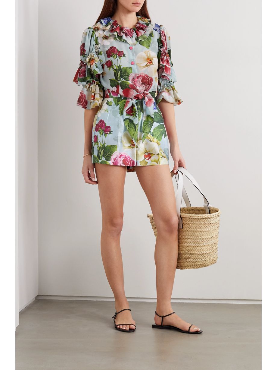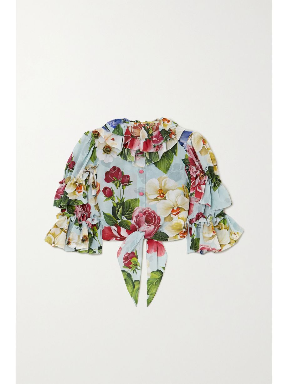 Ruffled floral-print stretch-silk blouseAED 3,680.63