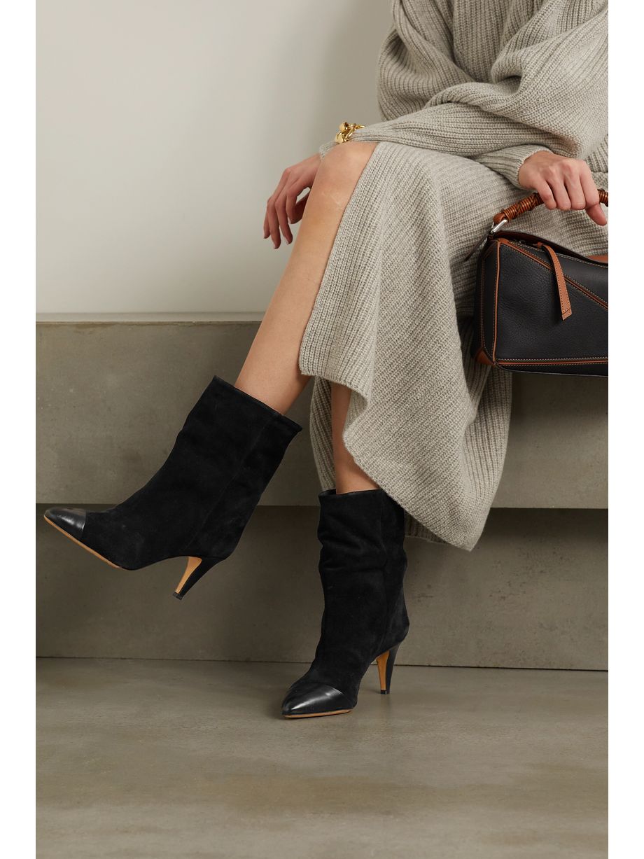 Radji leather-trimmed crystal-embellished suede shoulder bag