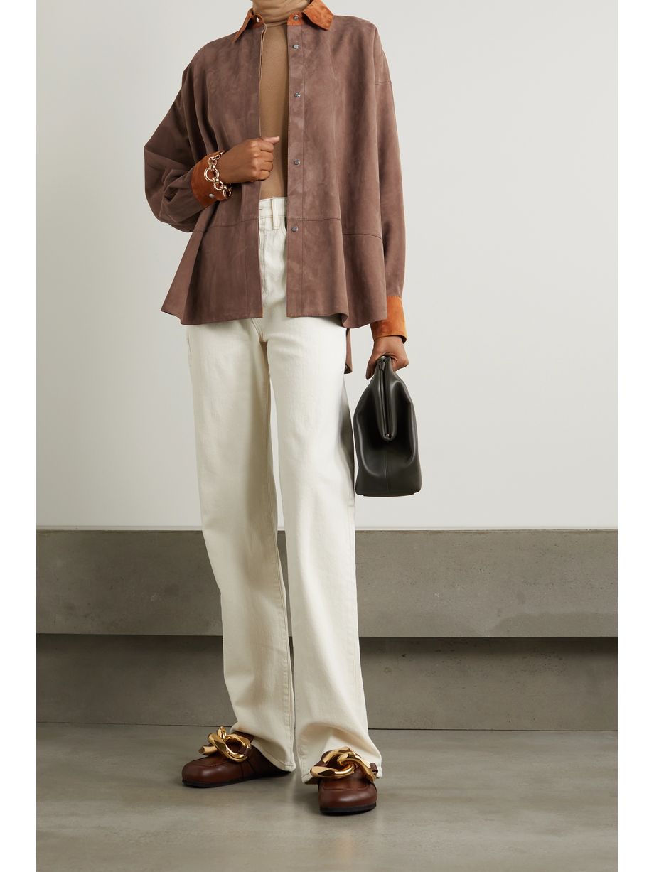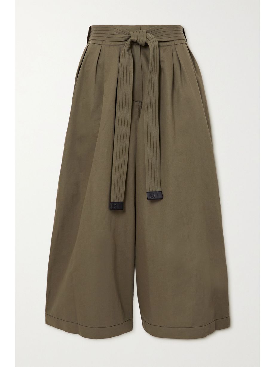 Leather-trimmed pleated cotton-canvas trench coatAED 9,480.29