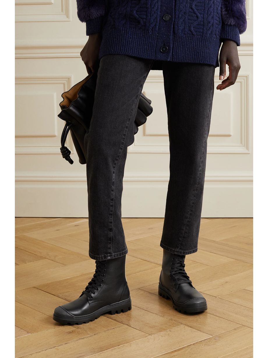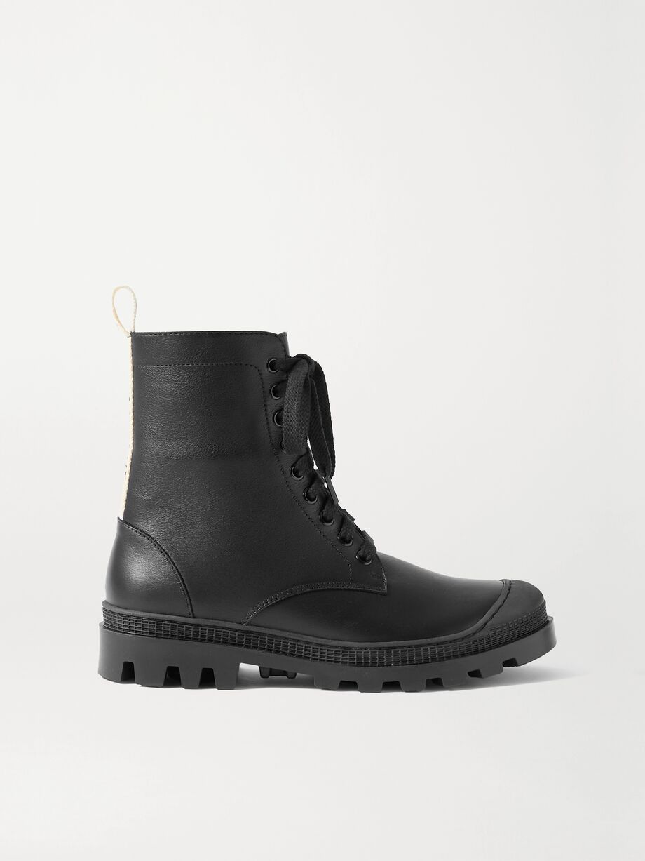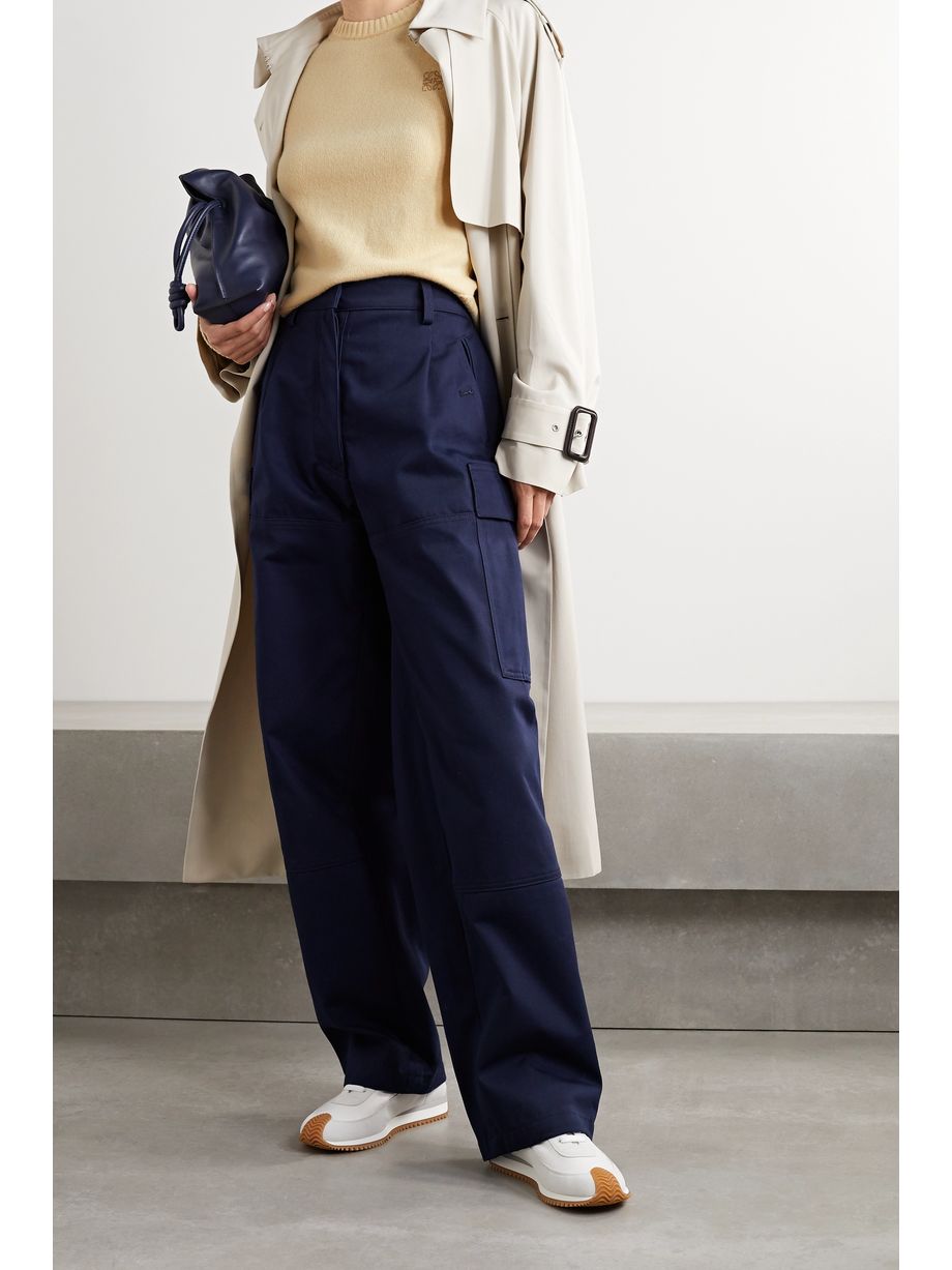 Leather-trimmed cotton and silk-blend trench coatAED 13,061.71