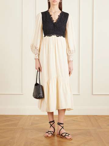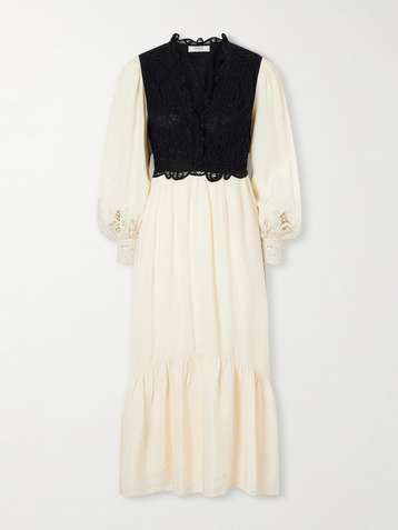 Adelina woven and guipure lace maxi dress