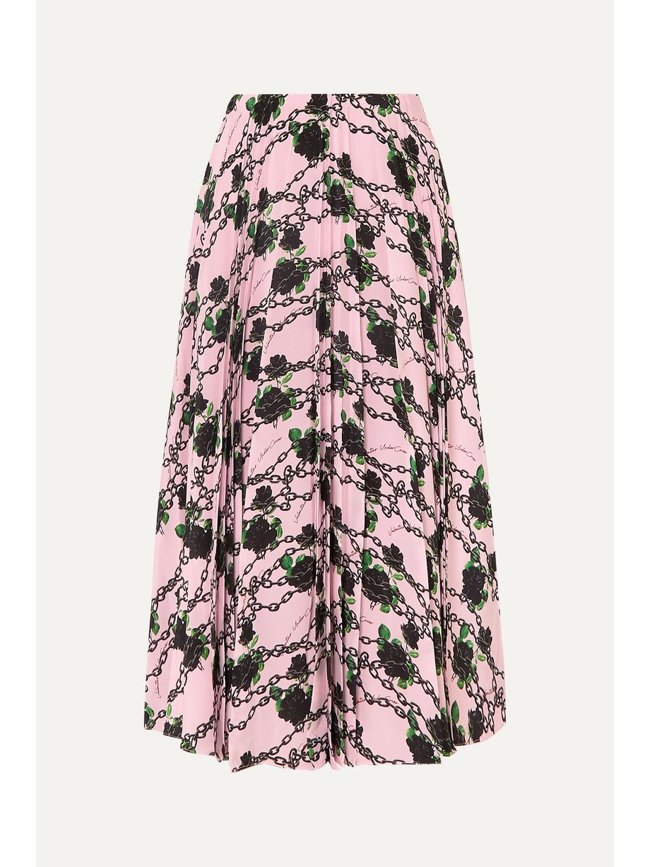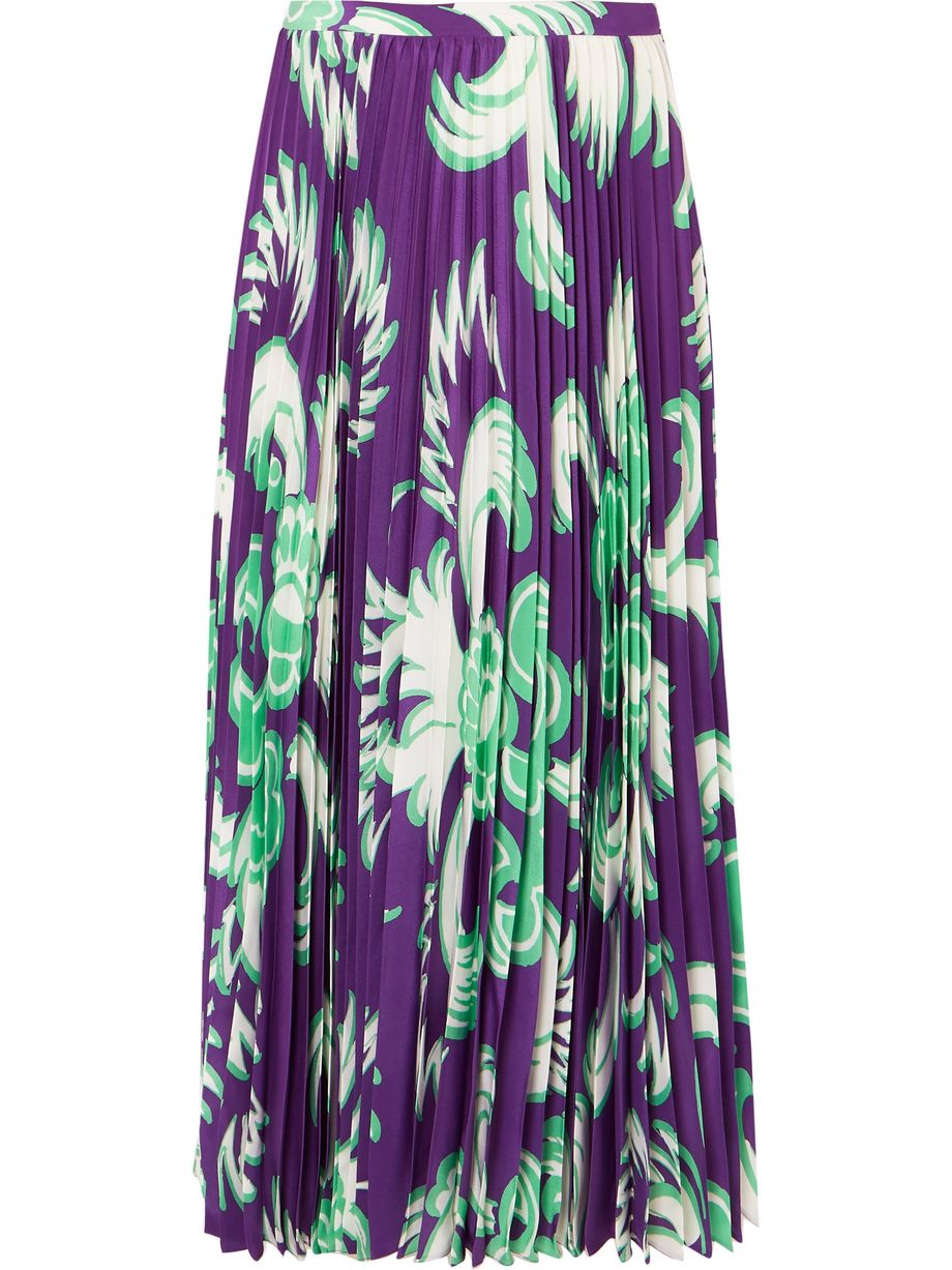 Pleated printed silk-crepe midi skirt