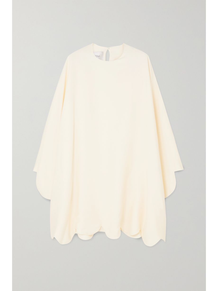 Cape-effect scalloped cady mini dress