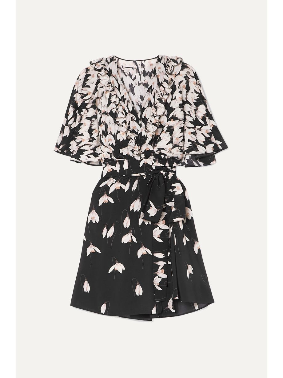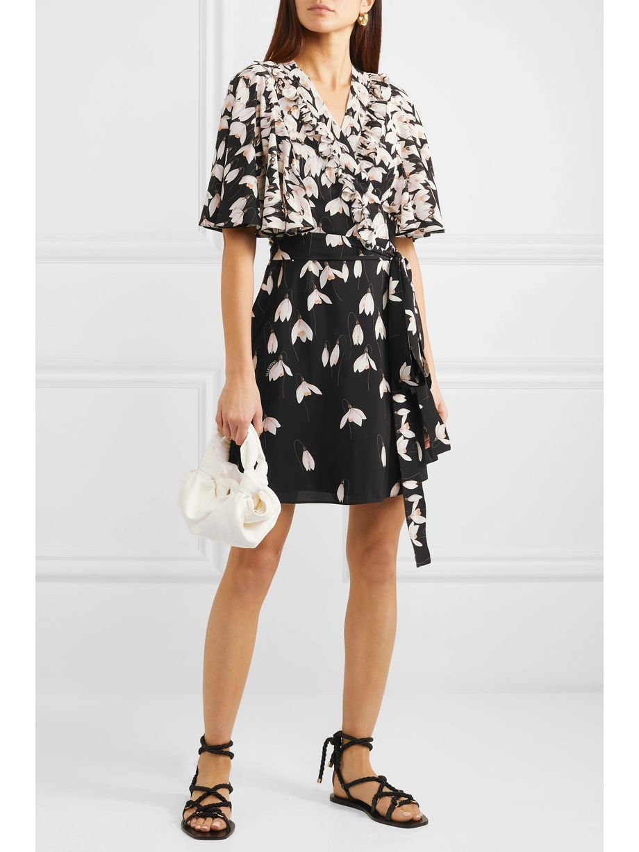 Ruffled floral-print silk crepe de chine mini wrap dress