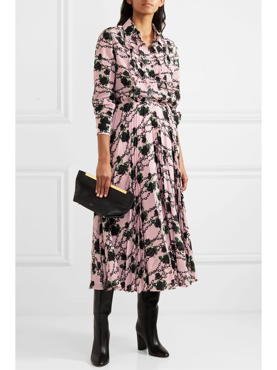 Pussy-bow pleated printed silk-georgette midi dressAED 19,305.73