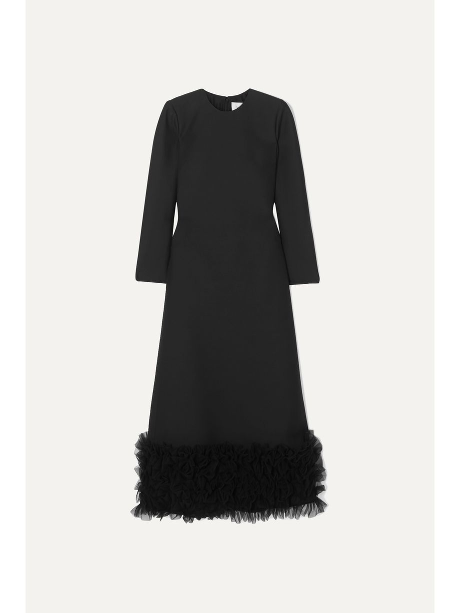 Tulle-trimmed wool and silk-blend crepe gown