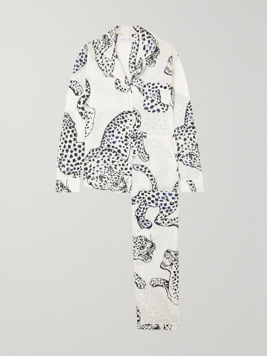 Chantal metallic-trimmed printed silk-blend satin pajama pants