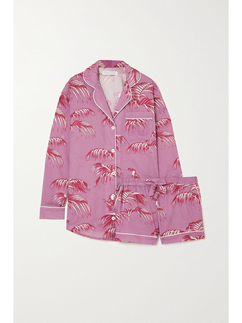 Tami metallic-trimmed printed silk-blend satin pajama shirt