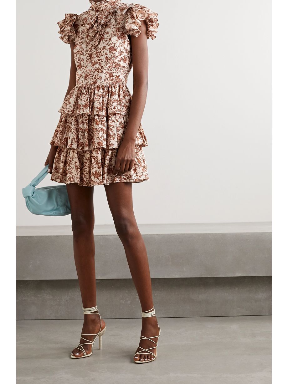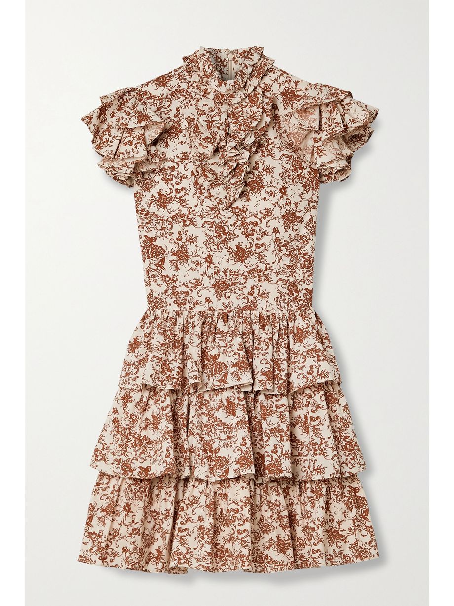 Kyra tiered ruffled floral-print cotton-poplin mini dress
