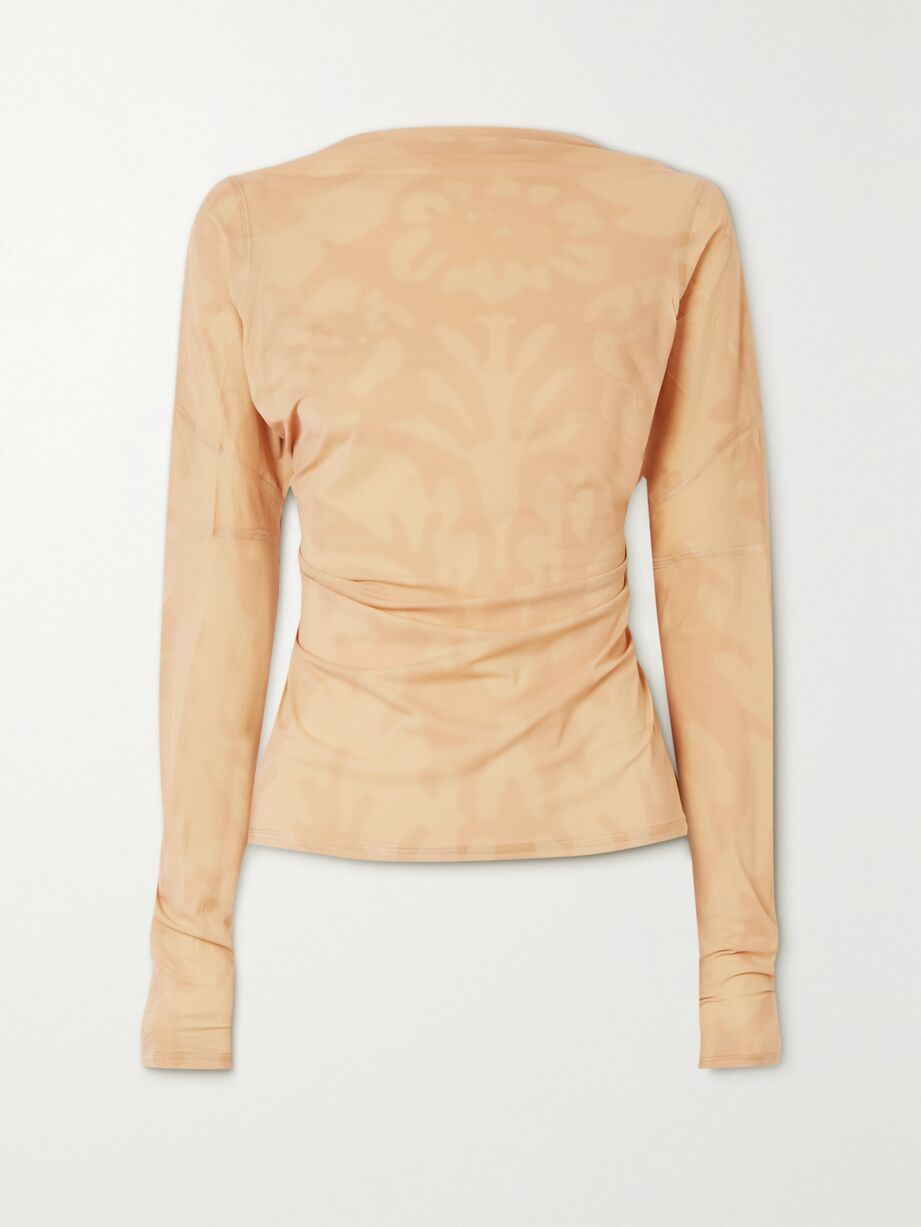 Open-back paneled printed stretch-jersey top