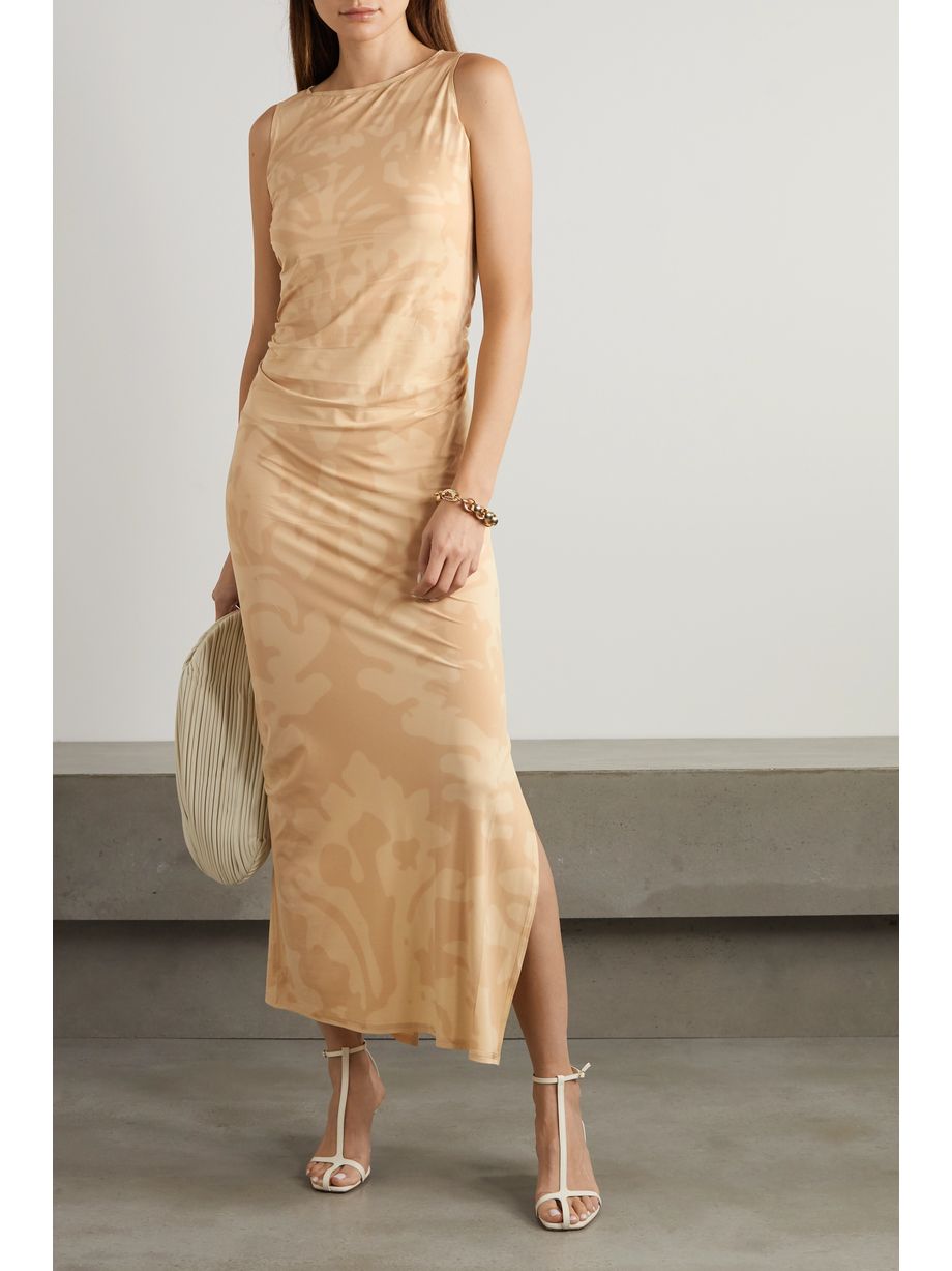 Carrie ruched printed stretch-jersey maxi dress