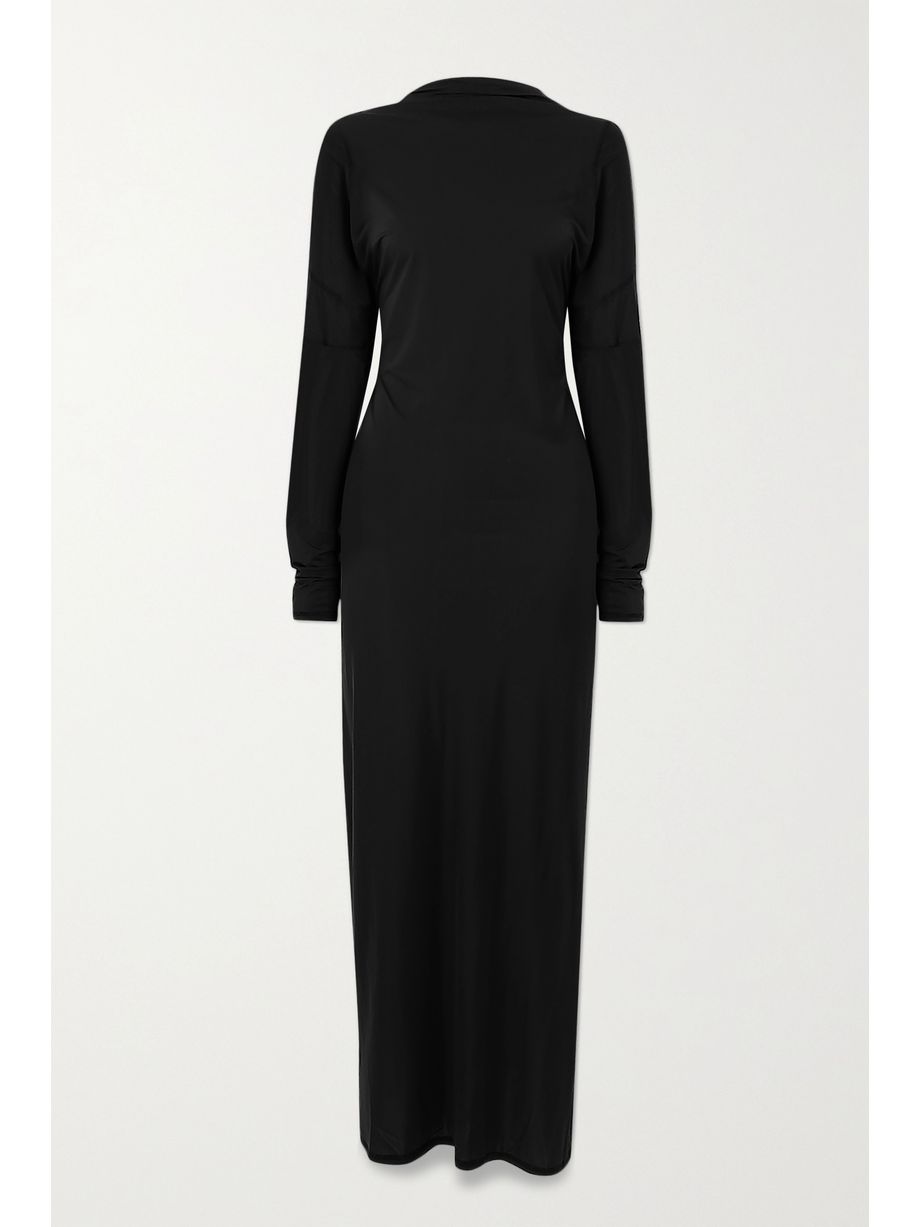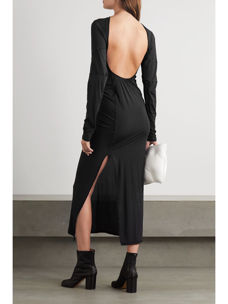 Open-back paneled stretch-jersey maxi dress