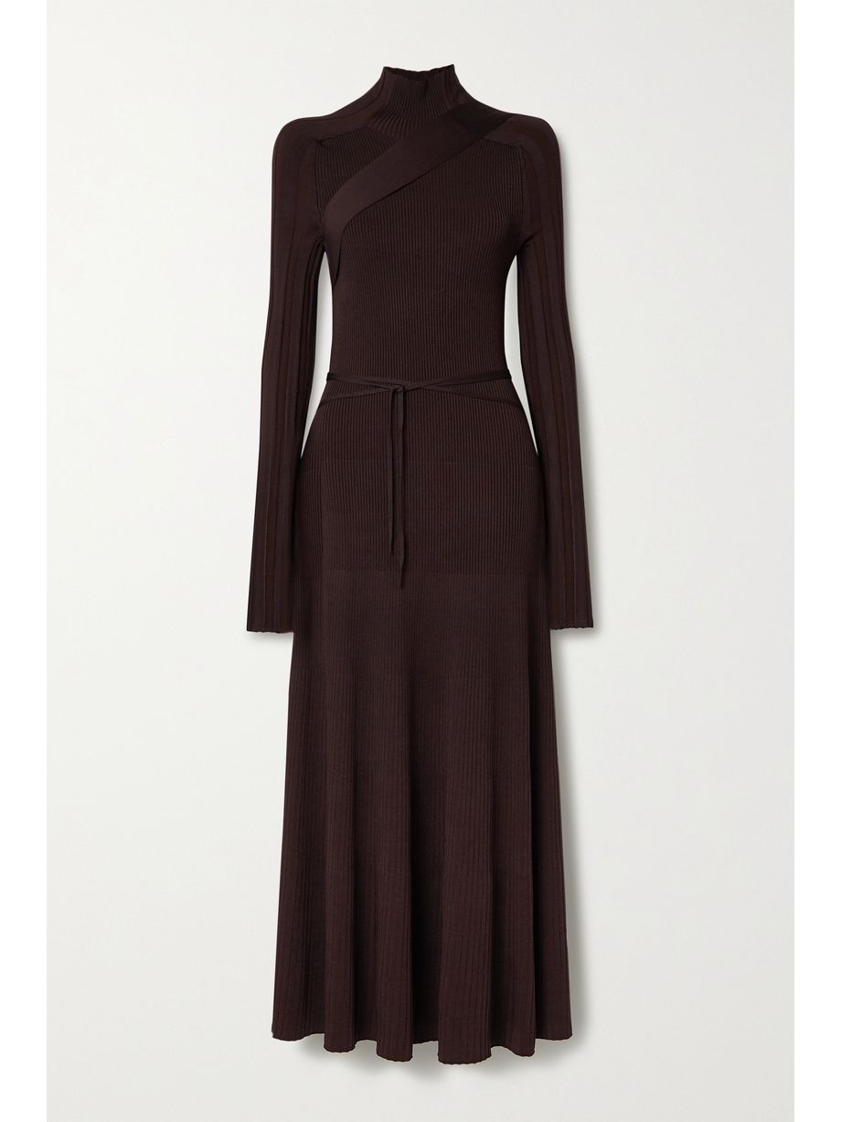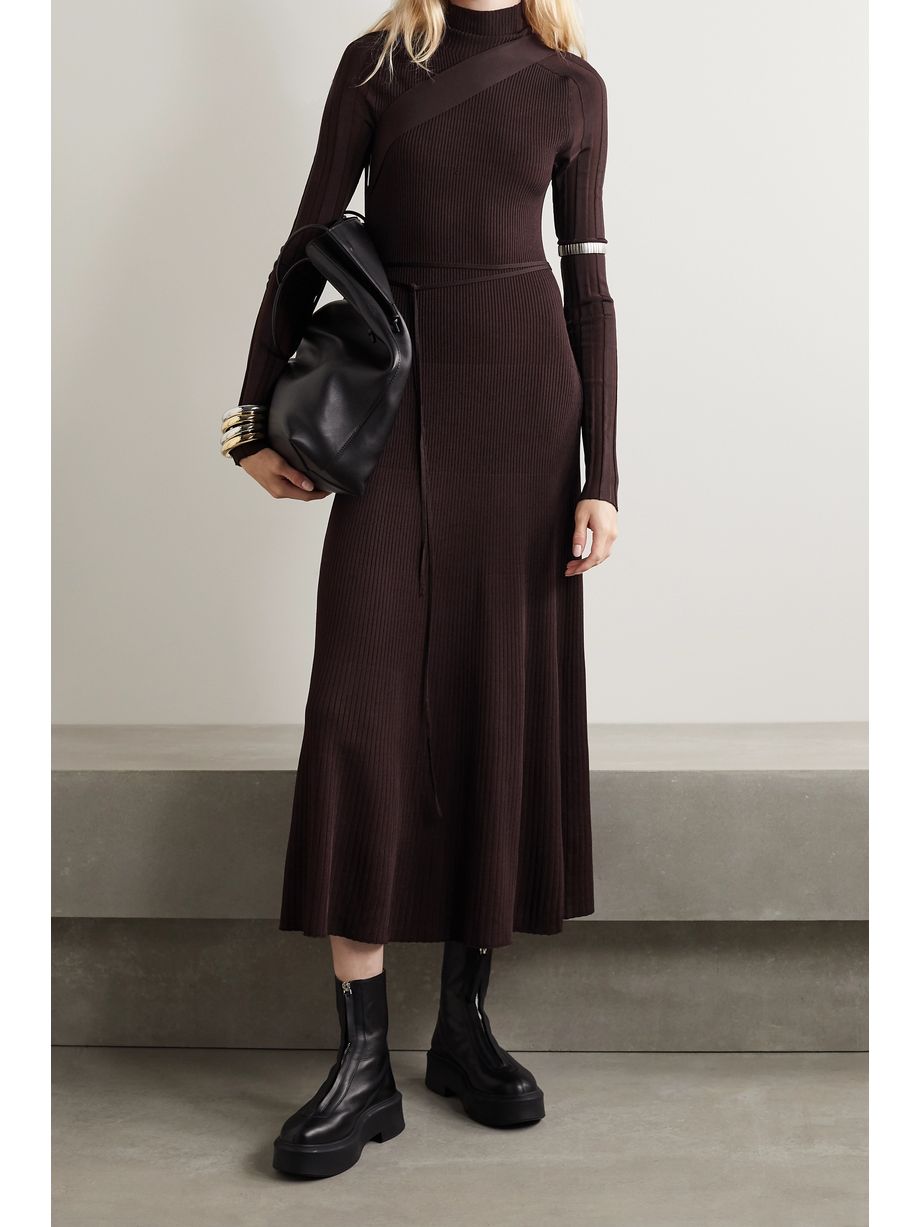 Seatbelt ribbed-knit turtleneck midi dress