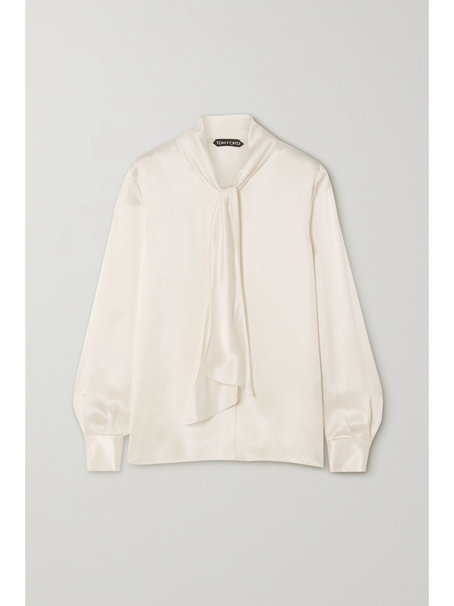 Pussy-bow washed-satin blouse