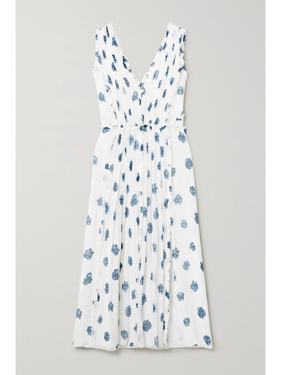 Ruffled floral-print silk-crepon midi dress