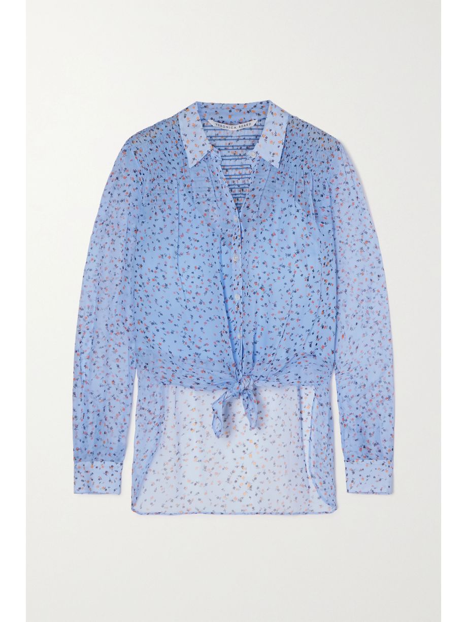 Dazed tie-front shirred floral-print silk-chiffon blouse