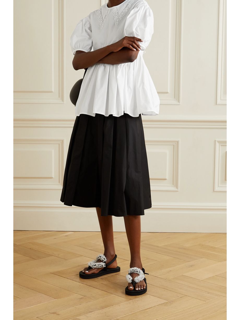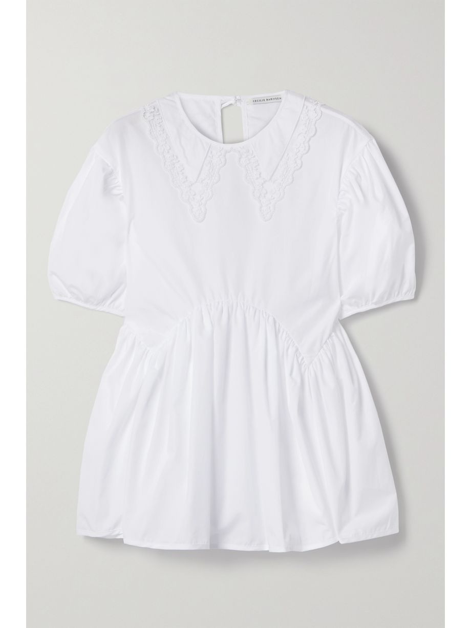 Mie embroidered tulle-trimmed cotton-poplin blouse