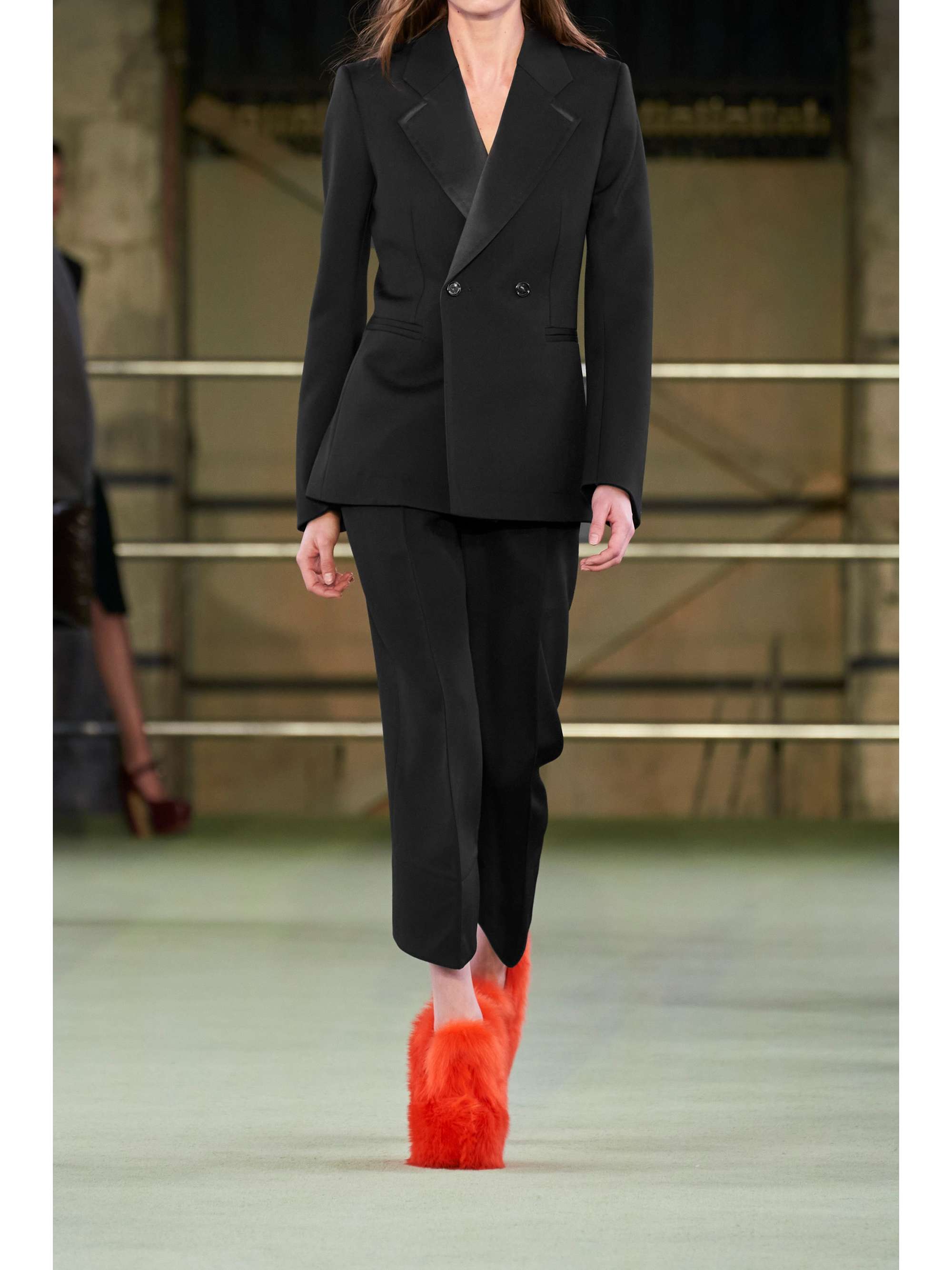 Bottega Veneta's shows are a masterclass in chic Italian dressing and Matthieu Blazy's debut as Creative Director didn't disappoint. Seen on the runway, this double-breasted blazer is cut from grain de poudre wool with fluted, curved sleeves and sharp satin lapels. Wear it with tailored pants and any of the statement shoes from the new collection.