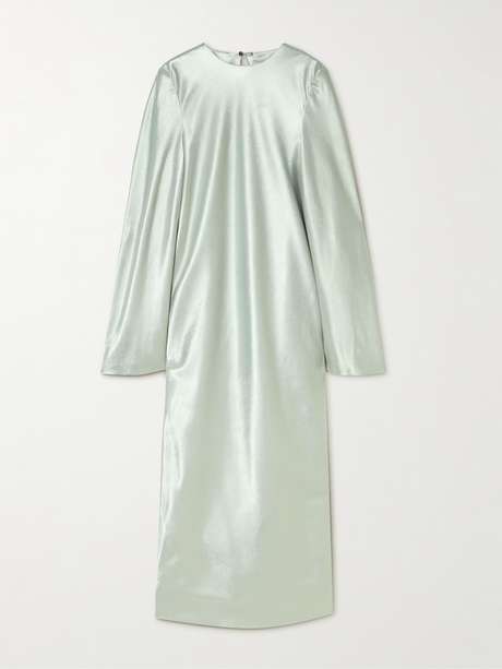 Calvin Klein Collection's 'Alba' dress is made from duchesse-satin that has a liquidy, almost metallic glow. Cut for a relaxed fit, it has a crew neckline and straight, column shape. Style yours with mules and the label's chainmail bag.