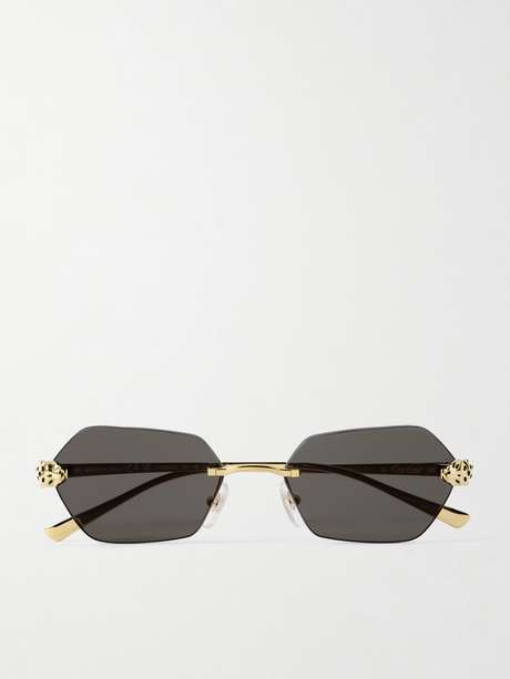CARTIER EYEWEAR Panthère de Cartier rimless hexagon-frame gold-tone sunglasses