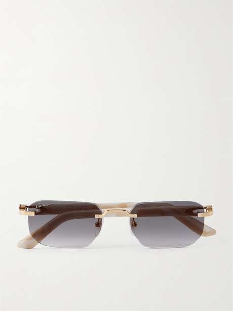 CARTIER EYEWEAR Signature C rimless rectangular-frame gold-tone and acetate sunglasses